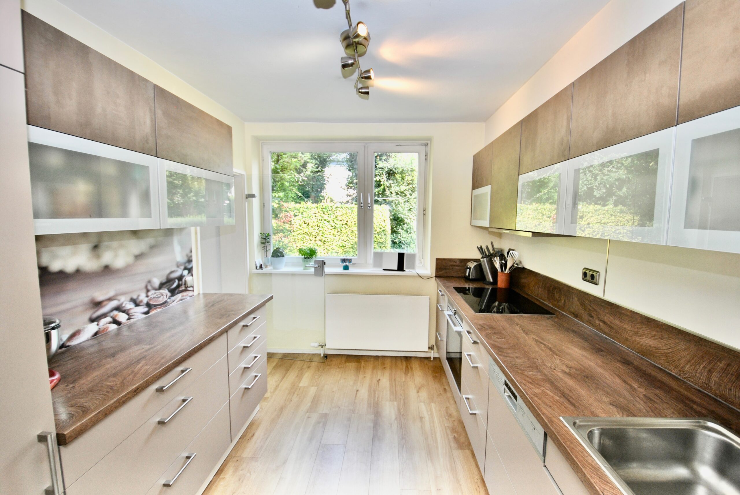 Die neuwertige und sehr geschmackvolle Einbauküche ist u. a. mit einem Induktionsherd und mit hochwertigen Geräten namhafter Hersteller ausgestattet.