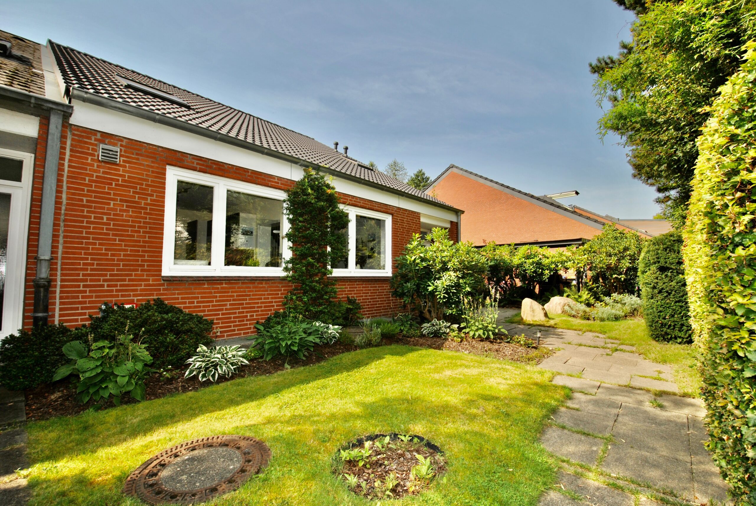 Das real geteilte Grundstück (eigenes Flurstück, keine WEG) ist nach allen Seiten mit einer ganzjährig grünen Hecke und hohen Pflanzen bepflanzt und ist somit nicht einsehbar. Die Privatsphäre bleibt hier gewahrt! Ein Gartenhäuschen für Fahrräder und diverse Gartengeräte befinden sich seitlich des Hauses.